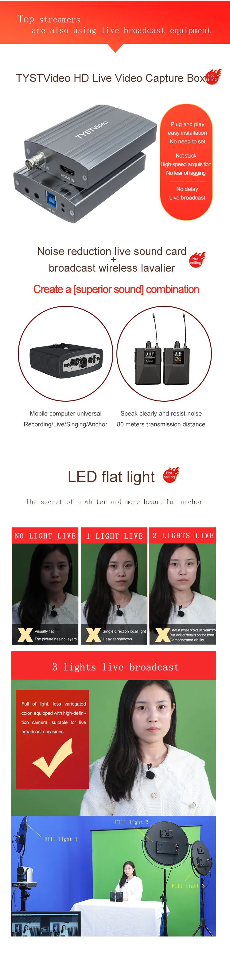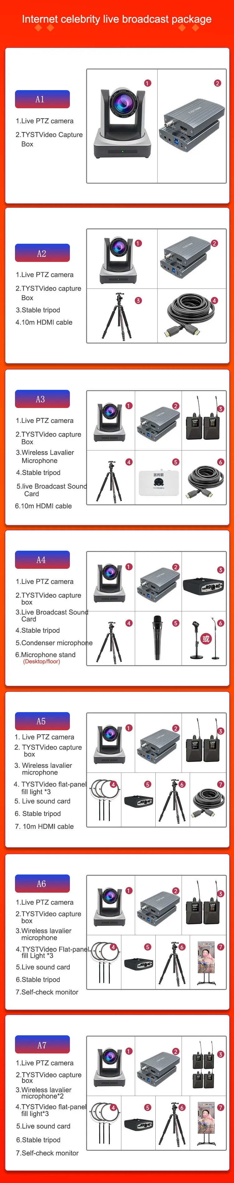 live stream package TYSTVideo factory supply HD camera tripod capture card filling LED light HD moniProduct details